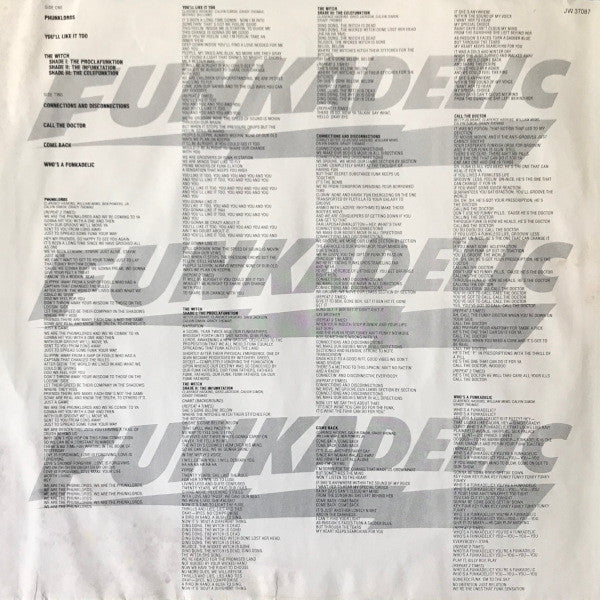 A1. Phunklords 5:33 A2. You'll Like It Too 4:28 A3a. The Witch Shade I: The Proclafunktion 2:48 A3b. The Witch Shade II: The Infunktation 4:13 A3c. The Witch Shade III: The Celefunktion 2:29 B1. Connections And Disconnections 5:00 B2. Come Back 4:44 B3. Call The Doctor 5:12 B4. Who's A Funkadelic 5:46