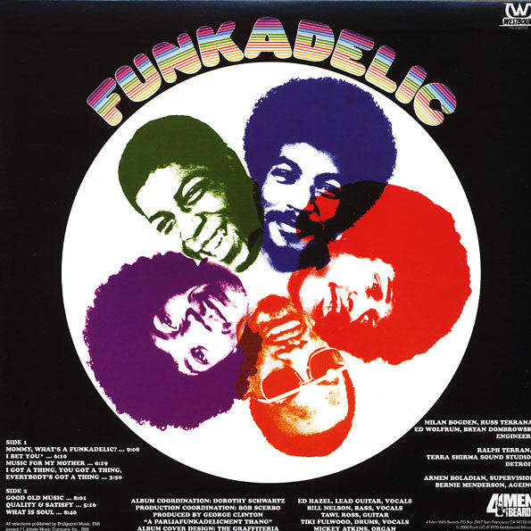 A1. Mommy, What's A Funkadelic? 9:08 A2. I Bet You 6:10 A3. Music For My Mother 6:19 A4. I Got A Thing, You Got A Thing, Everybody's Got A Thing 3:50 B1. Good Old Music 8:01 B2. Qualify & Satisfy 5:16 B3. What Is Soul 8:40