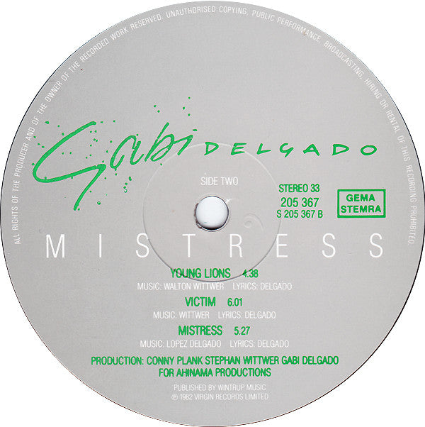 Distributed By Ariola Group Of Companies Phonographic Copyright (p) Virgin Records Ltd. Copyright (c) Virgin Records Ltd. Published By Wintrup Musikverlag Produced For Ahinama Productions Recorded At Conny's Studio Pressed By Sonopress Printed By Mohndruck Graphische Betriebe GmbH Designed At Ansell Sadgrove