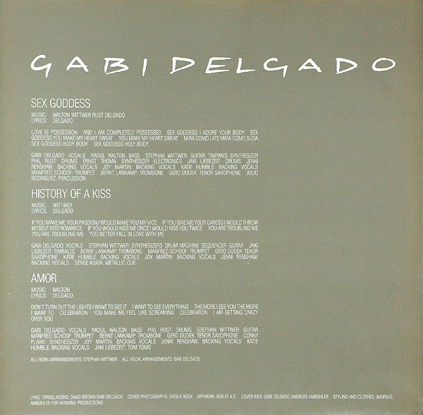 A1. Sex Goddess 5:22 A2. History Of A Kiss 5:36 A3. Amor 5:07 B1. Young Lions 4:38 B2. Victim 6:01 B3. Mistress 5:27