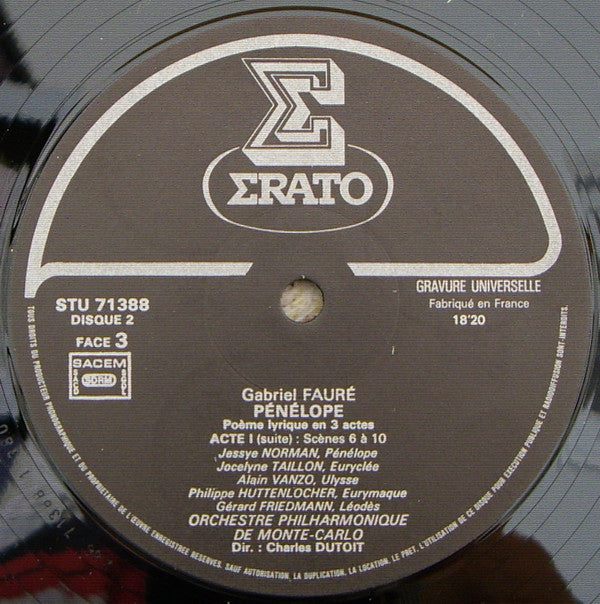 Gabriel Fauré / Jessye Norman, Alain Vanzo, Jocelyne Taillon, José van Dam, Philippe Huttenlocher, Ensemble Choral Jean Laforge, Orchestre Philharmonique De Monte-Carlo, Charles Dutoit - Pénélope (Poème Lyrique En Trois Actes) (3xLP, Album + Box)