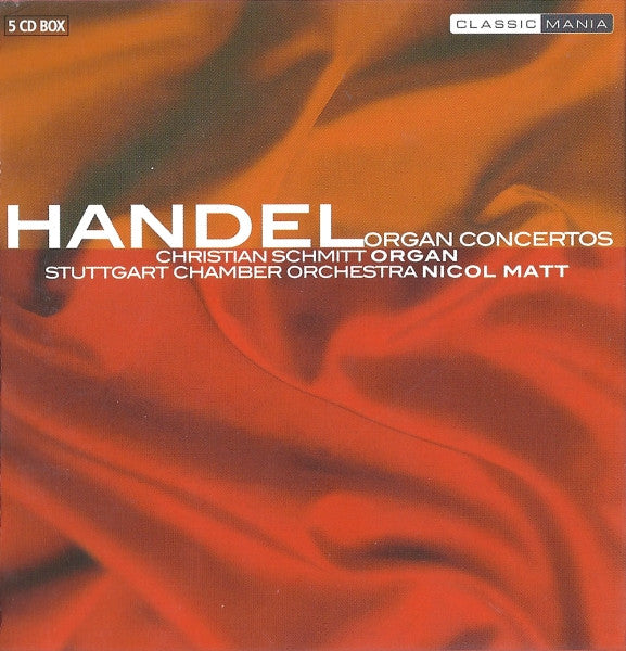 . Concerto [No.1] G Minor HWV 289 (Op. 4/1) 1-1. Larghetto E Staccato 5:121-2. Allegro 5:301-3. Adagio 1:091-4. Andante 4:09. Concerto [No.2] B Flat Major HWV 290 (Op. 4/2) 1-5. A Tempo Ordinario E Staccato 0:571-6. Allegro 5:031-7. Adagio E Staccato 0:411-8. Allegro Ma Non Presto 3:57. Concerto [No.3] G Minor HWV 291 (Op. 4/3) 1-9. Adagio 3:501-10. Allegro 3:581-11. Adagio 1:021-12. Allegro 2:26. Concerto [No.4] F Major HWV 292 (Op. 4/4) 1-13. Allegro 3:481-14. Andante 6:111-15. Adagio 1:101-16. Allegro 3:37. Concerto [No.5] F Major HWV 293 (op. 4/5) 2-1. Larghetto 1:592-2. Allegro 2:242-3. Alla Siciliana 1:352-4. Presto 2:32. Harp Concerto B Flat Major HWV 294 2-5. Andante Allegro 4:182-6. Larghetto 5:312-7. Allegro Moderato 2:34. Concerto [no.6] B Flat Major HWV 294 (Op. 4/6) 2-8. Andante Allegro 6:082-9. Larghetto 3:502-10. Allegro Moderato 2:38. Concerto [No.7] B Flat Major HWV 306 (Op. 7/1) 2-11. Andante 9:432-12. Largo E Piano 3:012-13. Fuga 2:192-14. Adagio 2:292-15. Bourrée 2:45. Concerto [No.8] A Major HWV 307 (Op. 7/2) 3-1. Ouverture 2:503-2. A Tempo Ordinario 5:173-3. Andante 1:453-4. Allegro 4:46. Concerto [No.9] B Flat Major HWV 308 (Op. 7/3) 3-5. Andante 5:253-6. Organo Ad Libitum: Sarabande 3:063-7. Spiritoso 4:373-8. Minuet I 1:313-9. Minuet II 3:49. Concerto [No.10] D Minor HWV 309 (Op. 7/4) 3-10. Adagio 5:383-11. Allegro Così Così 5:013-12. Organo Ad Libitum 0:463-13. Allegro 4:29. Concerto [No.11] G Minor HWV 310 (Op. 7/5) 3-14. Staccato Ma Non Troppo Allegro/Adagio 3:363-15. Andante Larghetto E Staccato/Adagio 3:543-16. Menuet 2:093-17. Gavotte 3:40. Concerto [No.12] B Flat Major HWV 311 (Op. 7/6) 4-1. Pomposo 3:584-2. Andante 2:044-3. Air 2:56. Concerto [No.13] F Major HWV 295 (2nd Set, No.1) "The Cuckoo And The Nightingale" 4-4. Larghetto 2:254-5. Allegro 3:304-6. Organo Ad Libitum: Fuga HWV 609 4:494-7. Larghetto 2:474-8. Allegro 3:13. Concerto [No.14] A Major HWV 296a (2nd Set, No.2) 4-9. Largo E Staccato 4:254-10. Organo Ad Libitum: Air A Major HWV 468 1:224-11. Andante 4:404-12. Grave: Organo Ad Libitum 0:364-13. Allegro 6:25. Concerto [No.15] D Minor HWV 304 4-14. Andante 5:384-15. Grave 2:114-16. Organo Ad Libitum: Fuga G Major HWV 606 4:114-17. Allegro 4:55. Concerto [No.16] F Major HWV 305a 5-1. Ouverture 1:325-2. Allegro 3:195-3. Organo Ad Libitum 2:095-4. Allegro Ma Non Troppo 3:525-5. Adagio 1:245-6. Andante 3:435-7. Allegro 1:445-8. Marche Allegro 1:43. From „Six Fugues Or Voluntarys For The Organ Or Harpsichord" 5-9. HWV 605 Fugue In G Minor 4:045-10. HWV 607 Fugue In B Flat Major 2:495-11. HWV 608 Fugue In B Flat Minor 5:165-12. HWV 610 Fugue In C Minor 3:34