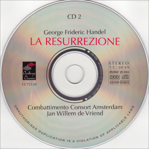 . La Resurrezione, HWV 47 . Oratorio Per La Resurrezione Di Nostro Signor Gesù Cristo Poesia Del Carlo Sigismondo Capece . Parte Prima / Part One 64:02. Parte Seconda / Part Two 50:49