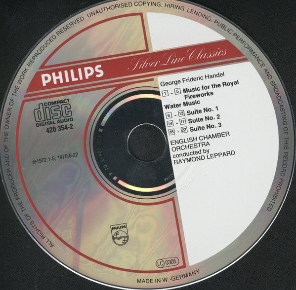 . Music For The Royal Fireworks = Feuerwerksmusik = Musique Pour Les Feux D'Artifice Royaux . Water Music Suite = Wassermusik - Suite No. 1 . Water Music Suite = Wassermusik - Suite No. 2 . Water Music Suite = Wassermusik - Suite No. 3
