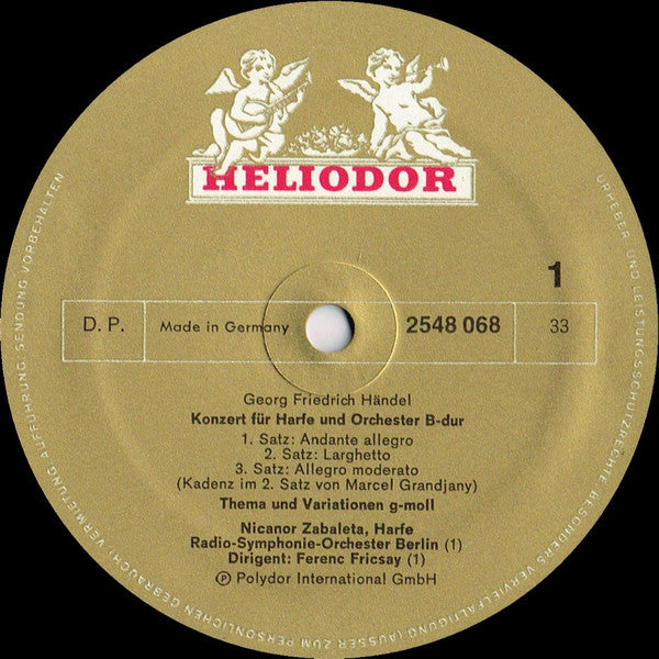 Georg Friedrich Händel • Johann Sebastian Bach • Arcangelo Corelli – Nicanor Zabaleta, Radio-Symphonie-Orchester Berlin, Ferenc Fricsay - Nicanor Zabaleta • Harfe (LP, Comp)