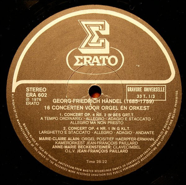 ℗ 1976 Erato. Manufactured by RCA B.V. Holland, Amsterdam, from master recordings owned or controlled by ERATO.