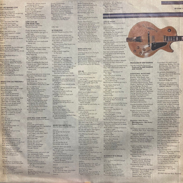 A1. Feel Like Making Love 4:22 A2. Inside Love (So Personal) 5:13 A3. Lady Love Me (One More Time) 3:59 A4. Love Will Come Again 5:42 B1. In Your Eyes 3:16 B2. Never Too Far To Fall 4:00 B3. Being With You 3:52 B4. Use Me 4:22 B5. Late At Night 3:29 B6. In Search Of A Dream 4:58