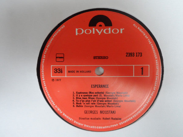 A1. Espérance (Nos Enfants) 2:30 A2. Il Y A Quelque Part 2:57 A3. Blue-Jean Blues 2:17 A4. Tu N'As Plus L'Air D'Une Enfant 2:53 A5. Rock 'N' Roll Rate 3:08 A6. Bahia 3:54 B1. Mam'Zelle Gibson 2:04 B2. Adolescence 4:09 B3. Chanter Tout Haut 3:15 B4. Si Ce Jour-La... 2:30 B5. Calix Bento 2:54 B6. Piano Player 3:20