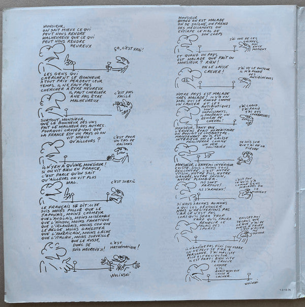 A1. Le Français Moyen A2. Le Vrai Est Faux A3. Youkaïdi Youkaïda A4. Tout Le Monde Sera Riche A5. Ah! L'Eternel Féminin A6. Le Porno, C'Est à Cause De La Guerre A7. La Contraception, Monsieur, Voilà L'Ennemi A8. Les Policiers, Les Bandits Et Les Otages A9. Nous Sommes Gouvernés Par Des Rigolos A10. C'Est Beau D'Être Pauvre A11. La Télé Est à Tout Le Monde B1. Rouler Au Bordeaux B2. Quelque Chose "Socialiste" B3. Tout! Tout? Rien! Rien? B4. Dubo, Dubon, Dubonnet B5. On "Nait" Ancien Combattant B6. Ding! B7. Vous Me Faites Peur! B8. Le Dollar-Merde B9. Les Futuristes Nous Bassinent B10. C'Etait Le Bon Temps, Madame B11. Le Sense De L'Honneur B12. Donc Je Suis Heureux B13. L'Ennemi Intérieur