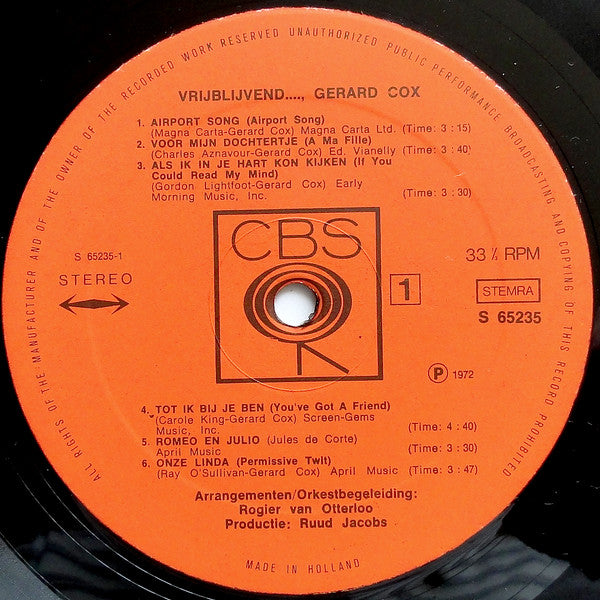 Gerard Cox - Vrijblijvend..., Gerard Cox (LP, Gat)