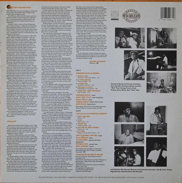 Side B: Recorded by Scott Goodeau at Composers' Recording Studio, New Orleans, Louisiana, December, 1985.