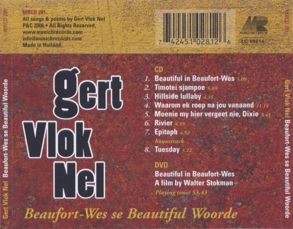 1. Beautiful In Beaufort-Wes 5:092. Timotei Sjampoo 5:493. Hillside Lullaby 4:354. Waarom Ek Roep Na Jou Vanaand 11:145. Moenie My Hier Vergeet Nie, Dixie 3:436. Rivier 4:597. Epitaph 4:52. Bonus Track 8. Tuesday 5:22. DVD 1. Beautiful in Beaufort-Wes, a Film By Walter Stokman 53:43