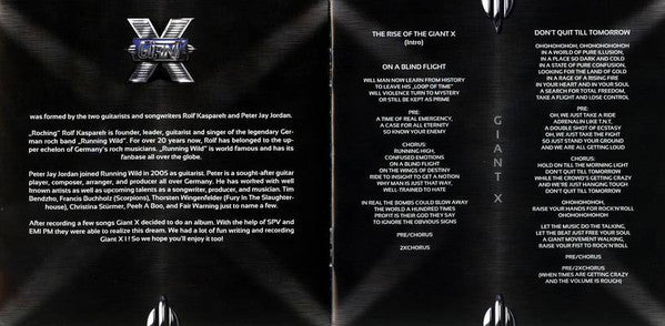 1. The Rise Of The Giant X (Intro) 2. On A Blind Flight 3. Don't Quit Till Tomorrow 4. Badland Blues 5. Now Or Never 6. Nameless Heroes 7. Go For It 8. The Count 9. Rough Ride 10. Friendly Fire 11. Let's Dance 12. Soulsurvivors 13. R.O.C.K.