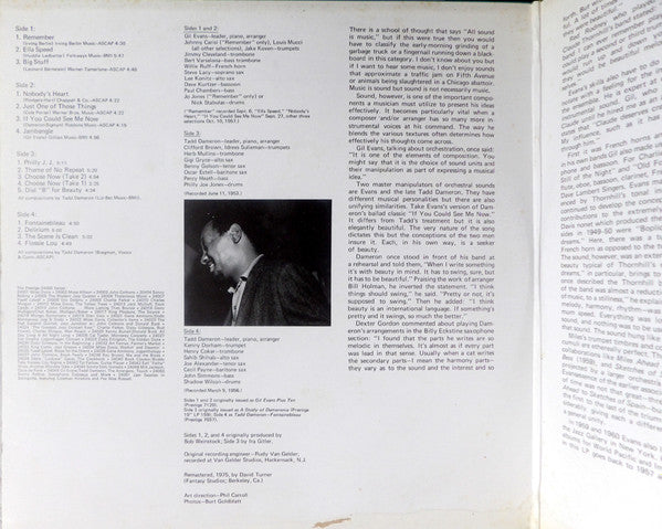 A1. Remember A2. Ella Speed A3. Big Stuff B1. Nobody's Heart B2. Just One Of Those Things B3. If You Could See Me Now B4. Jambangle . Tadd Dameron C1. Philly J.J. C2. Theme Of No Repeat C3. Choose Now (Take 2) C4. Choose Now (Take 1) C5. Dial "B" For Beauty D1. Fontainebleau D2. Delirium D3. The Scene Is Clean D4. Flossie Lou