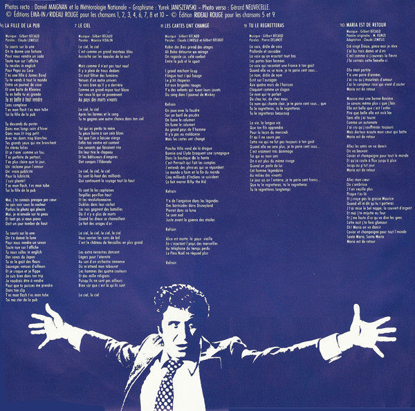 A1. Le Retour 3:30 A2. La Révolutione 4:02 A3. Comme Rambo 3:03 A4. Ma Chanson Lilas 3:02 A5. Marie-Pierre 3:35 B1. La Fille De La Pub 3:30 B2. Le Ciel 4:06 B3. Les Cartes Ont Changé 3:03 B4. Tu Le Regretteras 2:50 B5. Maria Est De Retour 2:50