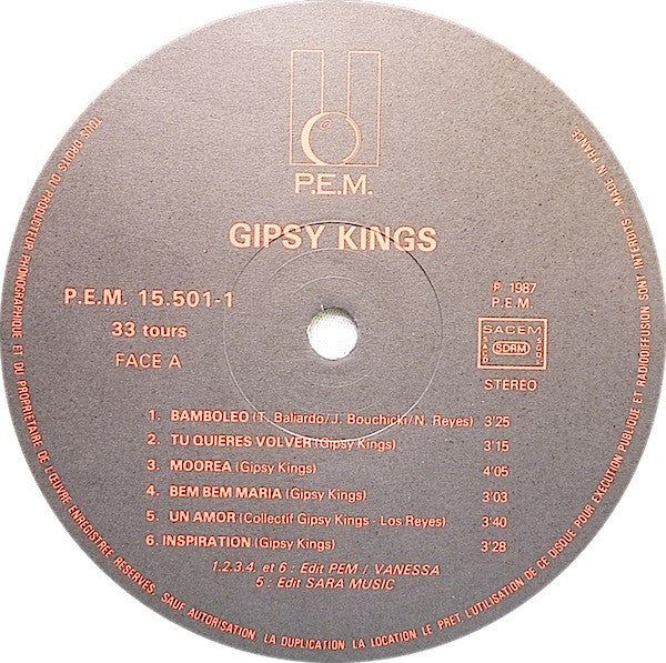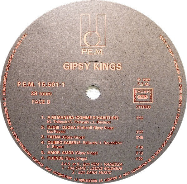 A1. Bamboleo 3:25 A2. Tu Quieres Volver 3:15 A3. Moorea 4:05 A4. Bem Bem Maria 3:03 A5. Un Amor 3:40 A6. Inspiration 3:28 B1. A Mi Manera (Comme D'Habitude) 3:52 B2. Djobi - Djoba 3:27 B3. Faena 3:45 B4. Quiero Saber 4:10 B5. Amor, Amor 3:13 B6. Duende 4:22