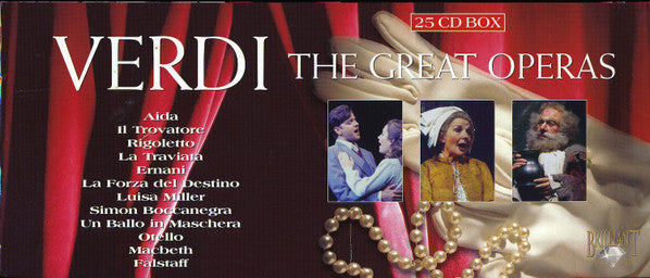 . La Traviata . Il Trovatore . Rigoletto . Aida . Simon Boccanegra, Prologue . Simon Boccanegra, The Play . Un Ballo In Maschera . Otello . Macbeth . Ernani . Luisa Miller . Falstaff . La Forza Del Destino