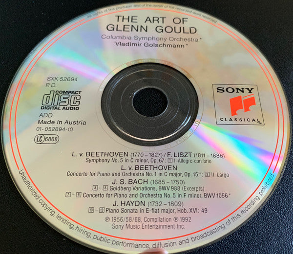 . Symphony No. 5 In C Minor, Op. 67 = C-moll = En Ut Mineur = In Do Minore . Concerto For Piano And Orchestra No. 1 In C Major, Op. 15 = Konzert Für Klavier Und Orchester Nr. 1 C-dur = Concerto Pour Piano Et Orchestre Nᵒ 1 En Ut Majeur = Concerto Per Pianoforte E Orchestra N. 1 In Do Maggiore . Goldberg Variations, BWV 988: Aria With 30 Variations = Goldberg-Variationen: Aria Mit 30 Veränderungen = Variations Goldberg: Aria Avec 30 Variations = Variazioni Goldberg: Aria Con 30 Variazioni (Clavier-Übung, Part = Teil = Partie = Parte IV) . Concerto For Piano And Orchestra No. 5 In F Minor, BWV 1056 = Konzert Für Klavier Und Orchester Nr. 5 F-moll = Concerto Pour Piano Et Orchestre Nᵒ 5 En Fa Mineur = Concerto Per Pianoforte E Orchestra N. 5 In Fa Minore . Piano Sonata In E-Flat Major, Hob. XVI: 49 = Klaviersonate Es-dur = Sonate Pour Piano En Mi Bémol Majeur = Sonata Per Pianoforte In Mi Maggiore