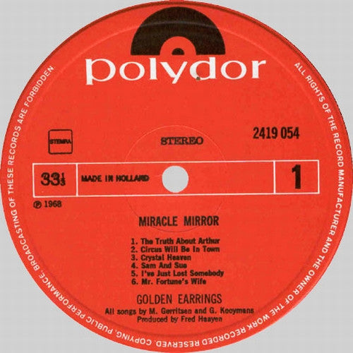 "Miracle Mirror" recorded and mixed at GTB Studios, The Hague during winter 1967 / 1968 by Jan Audier.