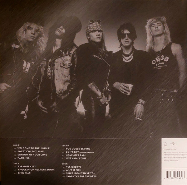 G1. Welcome To The Jungle G2. Sweet Child O' Mine G3. Shadow Of Your Love G4. Patience N1. Paradise City N2. Knockin' On Heaven's Door N3. Civil War F'N1. You Could Be Mine F'N2. Don't Cry (Original Version) F'N3. November Rain F'N4. Live And Let Die R1. Yesterdays R2. Ain't It Fun R3. Since I Don't Have You R4. Sympathy For The Devil