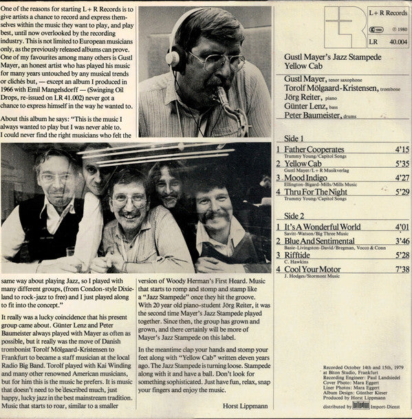 A1. Father Cooperates 4:15 A2. Yellow Cab 5:35 A3. Mood Indigo 4:27 A4. Thru For The Night 5:29 B1. It's A Wonderful World 4:01 B2. Blue And Sentimental 3:46 B3. Rifftide 5:28 B4. Cool Your Motor 7:38
