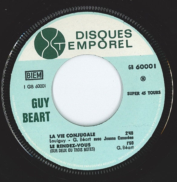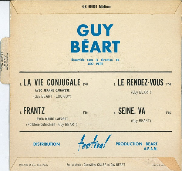A1. Guy Béart, Jeanne Canavèse - La Vie Conjugale 2:40 A2. Guy Béart - Le Rendez-vous (Sur Deux Ou Trois Notes) 1:50 B1. Guy Béart, Marie Laforêt - Frantz 2:59 B2. Guy Béart - Seine, Va 3:05