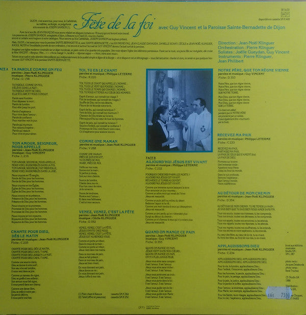 A1. Ta Parole Comme Un Feu 3:23 A2. Ton Amour, Seigneur, Nous Appelle 2:55 A3. Chante Pour Dieu, Dès Le Matin 2:22 A4. Toi, Tu Es Le Chant 3:40 A5. Comme Une Maman 2:25 A6. Venez, Venez, C'est La Fête 2:08 B1. Aujourd'hui Jésus Est Vivant 2:25 B2. Quand On Mange Ce Pain 2:38 B3. Notre Père, Que Ton Règne Vienne 2:32 B4. Recevez Ma Paix 3:16 B5. Au Détour De Mon Chemin 3:36 B6. Aplaudissons Dieu 2:55