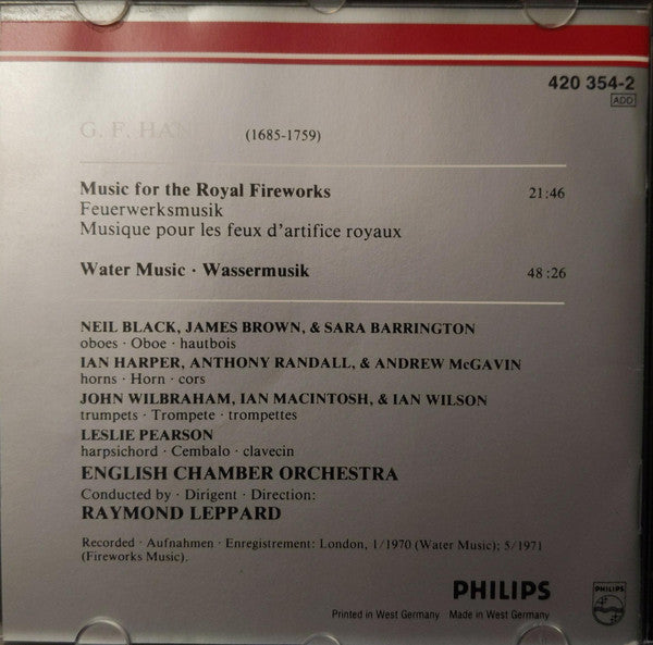 . Music For The Royal Fireworks Feuerwerksmusik - Musique Pour Les Feux D'Artifice Royaux . Water Music Suite - Wassermusik - Suite No. 1 . Water Music Suite - Wassermusik - Suite No. 2 . Water Music Suite - Wassermusik - Suite No. 3