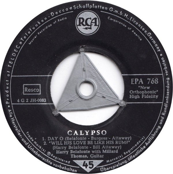 A1. Day O A2. "Will His Love Be Like HIs Rum?" B1. Jamaica Farewell B2. Dolly Dawn