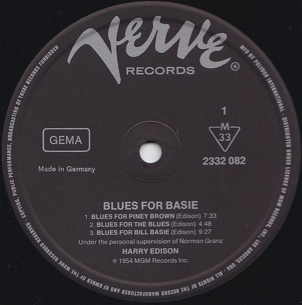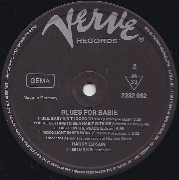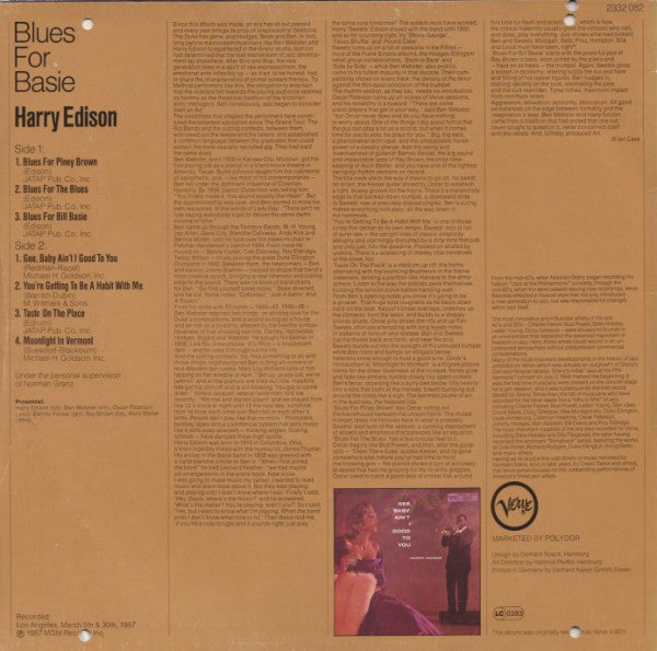 A1. Blues For Piney Brown 7:33 A2. Blues For The Blues 4:48 A3. Blues For Bill Basie 9:27 B1. Gee, Baby Ain't I Good To You 3:28 B2. You're Getting To Be A Habit With Me 6:49 B3. Taste On The Place 6:55 B4. Moonlight In Vermont 3:52