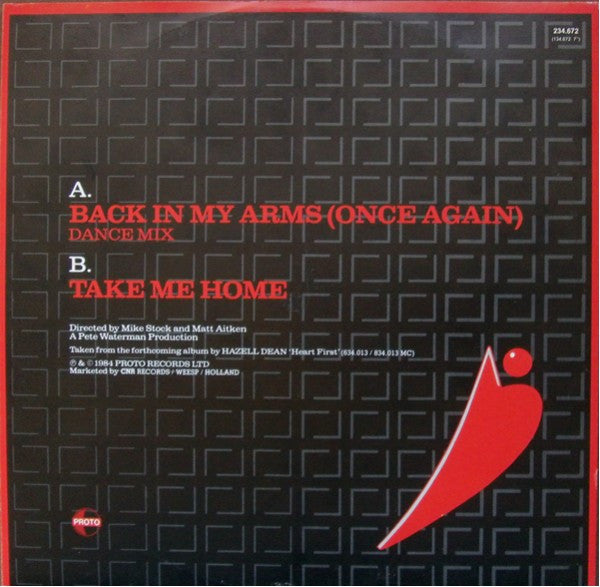 A. Back In My Arms (Once Again) (Dance Mix) 6:38B. Take Me Home 3:18