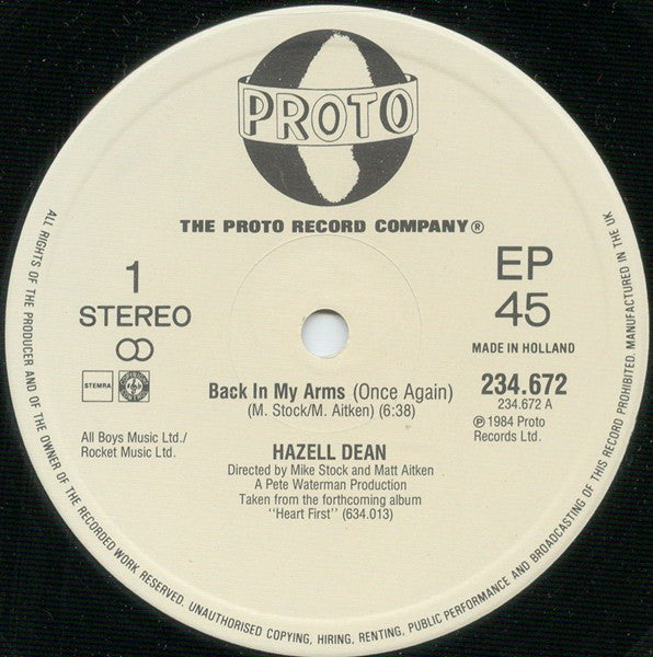 Hazell Dean - Back In My Arms (Once Again) (Dance Mix) (12", EP)