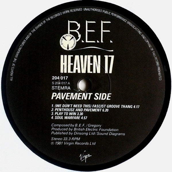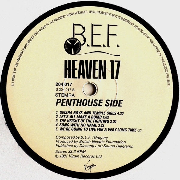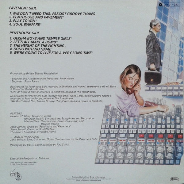 A1. (We Don't Need This) Fascist Groove Thang 4:17 A2. Penthouse And Pavement 6:20 A3. Play To Win 3:30 A4. Soul Warfare 4:57 . Penthouse Side B1. Geisha Boys And Temple Girls 4:30 B2. Let's All Make A Bomb 4:02 B3. The Height Of The Fighting 3:00 B4. Song With No Name 3:33 B5. We're Going To Live For A Very Long Time