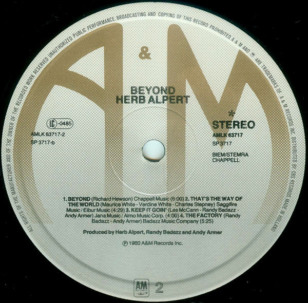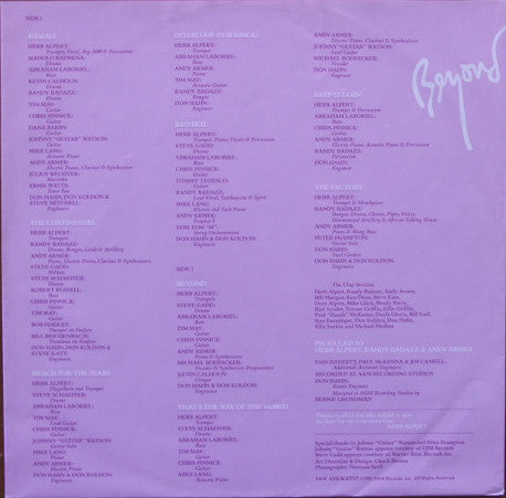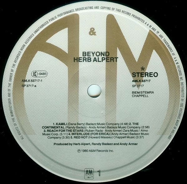 Phonographic Copyright (p) A&M Records, Inc. Copyright (c) A&M Records, Inc. Distributed By CBS Records Published By Badazz Music Published By Zara Music Published By Almo Music Corp. Published By Chappell Music Published By Saggifire Music Published By Eibur Music Published By Jana Music Mastered At Sheffield Lab Matrix Pressed By CBS, Haarlem