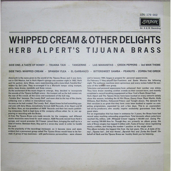 A1. A Taste Of Honey 2:43 A2. Green Peppers 1:31 A3. Tangerine 2:46 A4. Bittersweet Samba 1:46 A5. Lemon Tree 2:23 A6. Whipped Cream 2:33 B1. Love Potion No. 9 3:02 B2. El Garbanzo 2:13 B3. Ladyfingers 2:43 B4. Butterball 2:12 B5. Peanuts 2:09 B6. Lollipops And Roses 2:27