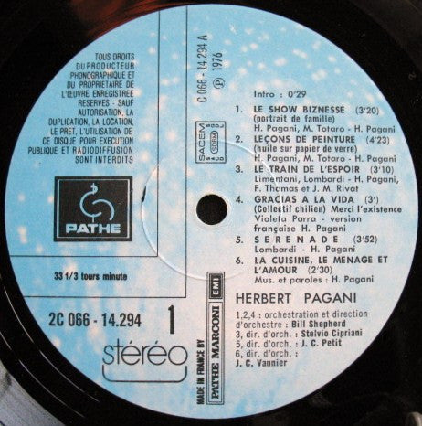 A1. Le Show Biznesse 3:20 A2. Leçons De Peinture 4:23 A3. Le Train De L'Espoir 3:10 A4. Gracias A La Vida / Merci L'Existence 3:00 A5. Sérénade 3:52 A6. La Cuisine, Le Ménage Et L'Amour 2:30 B1. Monologue De La Solitude 2:18 B2. Berger D'Artiste 6:10 B3. Messieurs Les Présidents 5:14 B4. L'Étoile D'Or 4:05 B5. L'Amitié 3:28 B6. Le Réseau 2:44