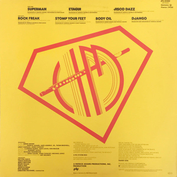 A1. Supermann 5:32 A2. Etagui 5:13 A3. Jisco Dazz 5:01 B1. Rock Freak 6:08 B2. Stomp Your Feet 4:23 B3. Body Oil 5:32 B4. Django 5:30
