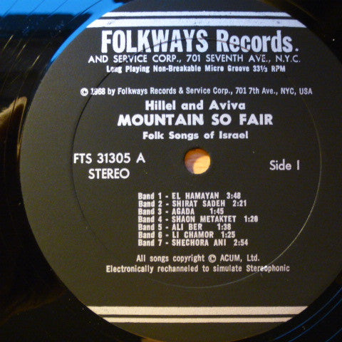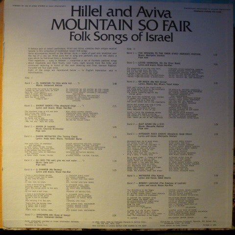 A1. El Hamayan (A Little White Kid...) 3:48 A2. Shirat Sadeh (The Shepherd Sings...) 2:21 A3. Agada (A Legend) 1:45 A4. Shaon Metaktek (The Ticking Clock) 1:20 A5. Ali Ber (Oh Well, Give Me Cool Water...) 1:38 A6. Li Chamor (My Donkey) 1:25 A7. Shechora Ani (Song Of Song) 2:54 B1. The Opening To The Omer (First Harvest) Festival 1:18 B2. Leyad Hanachal (OnThe River Bank) 2:20 B3. Od Nagia (We Will Arrive) 2:30 B4. Aley Givah (On A Hill) 1:59 B5. Hitbaser Roeh Chaviv (Shepherd, Good Cheer) 2:09 B6. Hatsavoa (The Hyena) 1:58 B7. Bokrey Lachish (The Cowboys Of Lachish) 2:50
