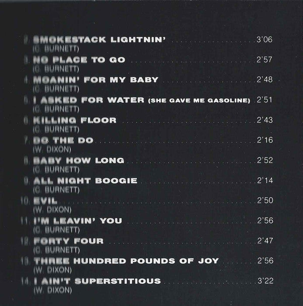 1. Sitting On Top Of The World 2:282. Smokestack Lightnin' 3:063. No Place To Go 2:574. Moanin' For My Baby 2:485. I Asked For Water (She Gave Me Gasoline) 2:516. Killing Floor 2:437. Do The Do 2:168. Baby How Long 2:529. All Night Boogie 2:1410. Evil 2:5011. I'm Leavin' You 2:5612. Forty Four 2:4713. Three Hundred Pounds Of Joy 2:5614. I Ain't Superstitious 3:22