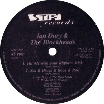 A1. Hit Me With Your Rhythm Stick A2. Sex & Drugs & Rock & Roll B1. Reasons To Be Cheerful B2. Wake Up (And Make Love To Me)