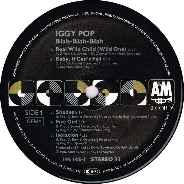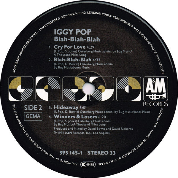 Record Company A&M Records, Inc. Distributed By PolyGram Made By Polygram Phonographic Copyright (p) A&M Records, Inc. Copyright (c) A&M Records, Inc. Published By Wren Music Co. Published By James Osterberg Music Published By Bug Music Published By Jones Music Published By A Thousand Miles Long Recorded At Mountain Studios Recorded At Olivier Ferrand Studio Mixed At Mountain Studios Pressed By PRS Hannover Lacquer Cut At PDO, Germany