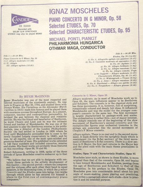 Ignaz Moscheles - Konzert Für Klavier Und Orchester In G-Moll, Op. 58 / Etüden, Op. 70 / Charakterstische Etüden, Op. 95 (LP, Album)