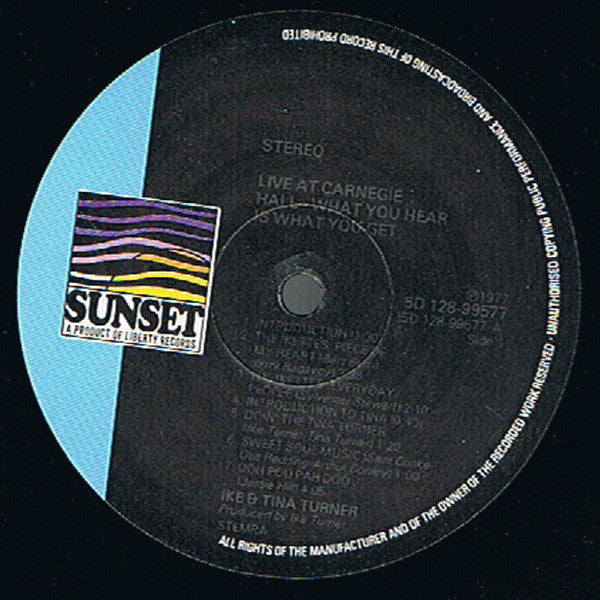 A1. Introduction 1:30 A2. Piece Of My Heart 3:38 A3. Everyday People 2:10 A4. Introduction To Tina 0:40 A5. Doin' The Tina Turner 1:20 A6. Sweet Soul Music 1:00 A7. Ooh Poo Pah Doo 4:05 B1. Honky Tonk Woman 3:05 B2. A Love Like Yours (Don't Come Knockin' Everyday) 3:43 B3. Proud Mary 6:35 B4. (Encore Of) Proud Mary 2:35 C1. Proud Mary (Continued) 3:25 C2. I Smell Trouble 7:57 C3. Ike's Tune 0:30 C4. I Wan't To Take You Higher 3:35 D1. I've Been Loving You Too Long 8:35 D2. Respect 5:03