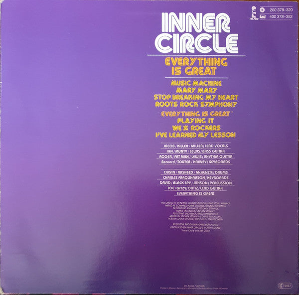 A1. Music Machine 4:48 A2. Mary Mary 5:12 A3. Stop Breaking My Heart 4:05 A4. Roots Rock Symphony 5:50 B1. Everything Is Great 5:55 B2. Playing It 4:50 B3. We 'A' Rockers 4:51 B4. I've Learned My Lesson 4:14