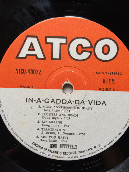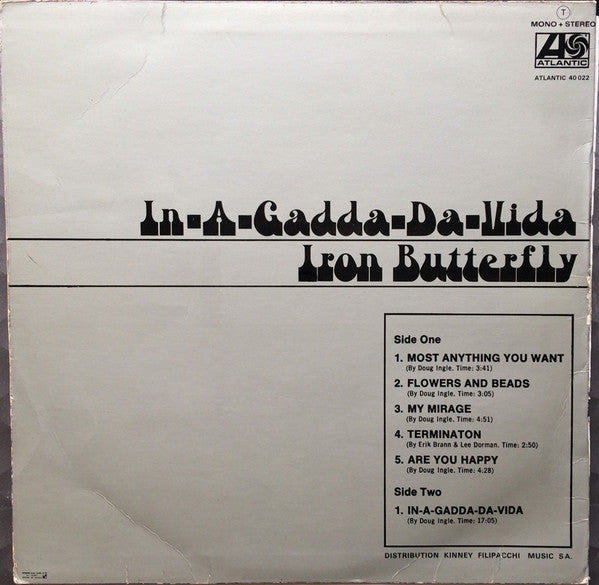 A1. Most Anything You Want 3:41 A2. Flowers And Beads 3:05 A3. My Mirage 4:51 A4. Termination 2:50 A5. Are You Happy 4:28 B1. In-A-Gadda-Da-Vida 17:05