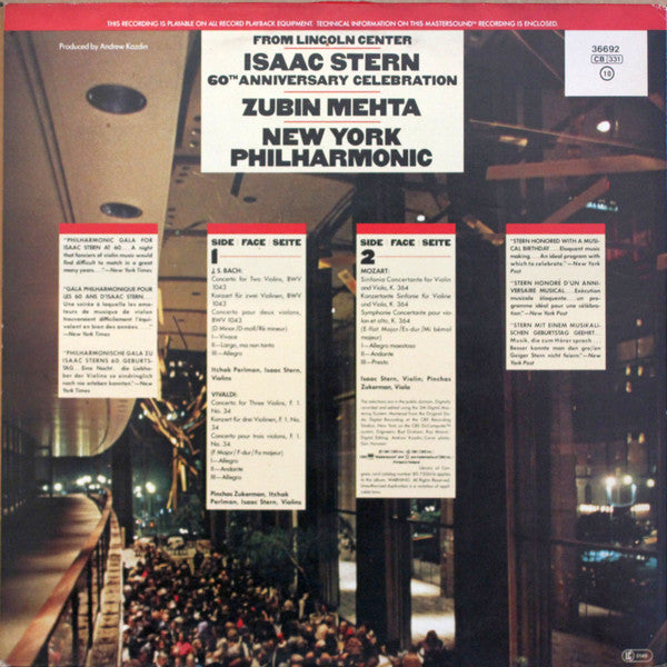 . Concerto For Two Violins, BWV 1043 (D Minor) . Concerto For Three Violins, F. 1, No. 34 . Sinfonia Concertante For Violin And Viola, K. 364