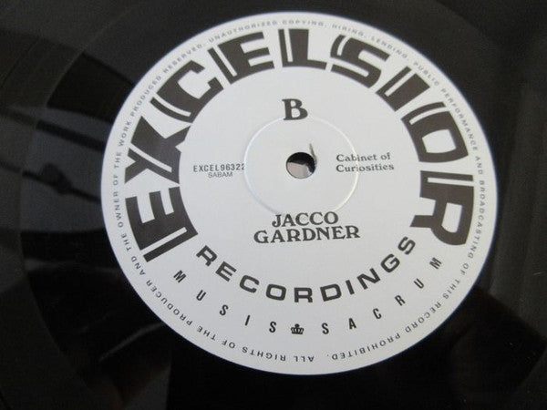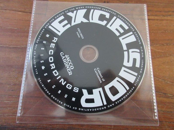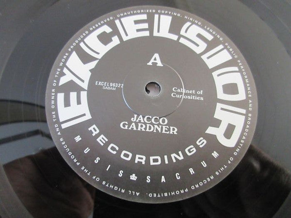 On the shrink is a sticker with "LP+CD "/ Jacco Gardner / Cabiniet of Curiosities". This sticker can be white with black text (like picture) or be black with white letters.