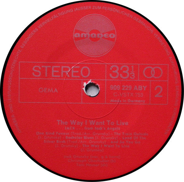 Jack Grunsky - "The Way I Want To Live" (LP, Album)