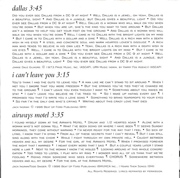 Track 1: Beat Up Ford Publishing/Songs Of PolyGram International, Inc./Door Number One Music/Blackwood Music Inc.