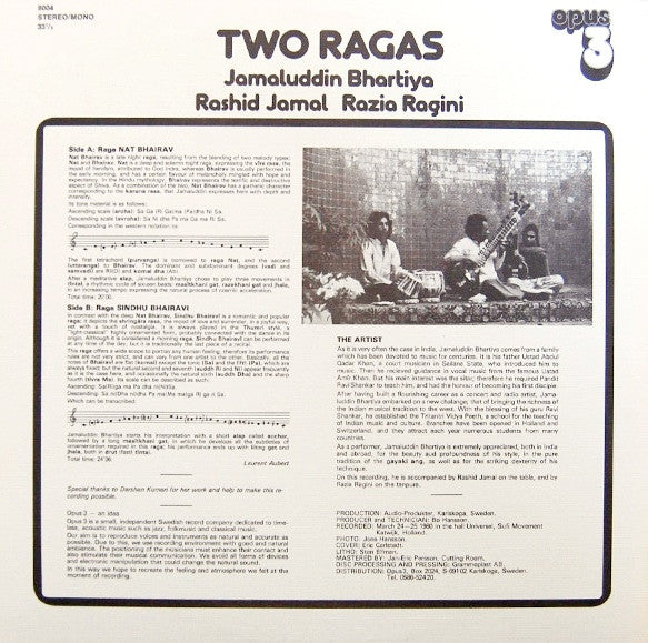 Recorded March 24-25 1980 in the Hall Universel, Sufi Movement Katwijk, Holland